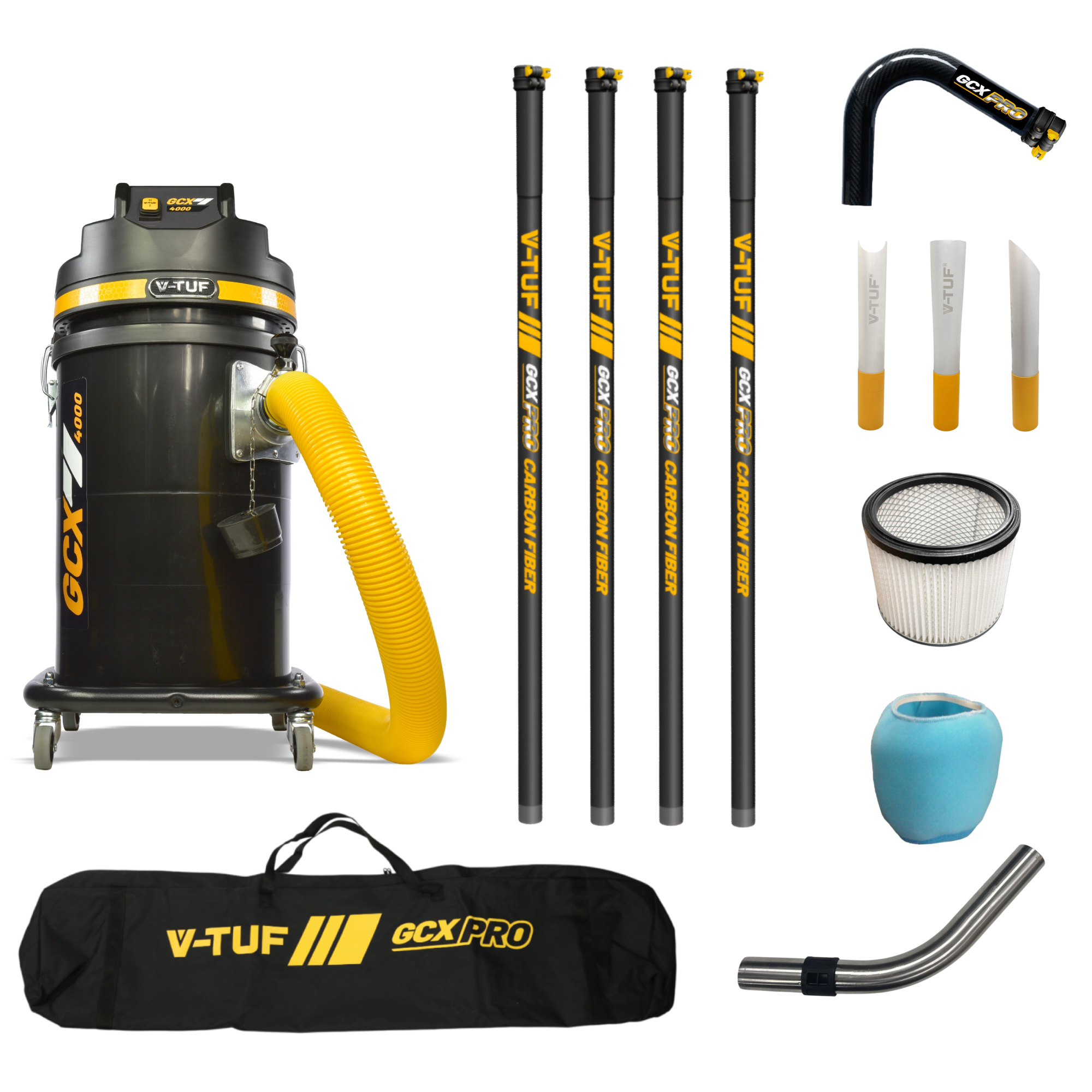 V-TUF GCX4000 1.75KW 37L WET & DRY Industrial Powerful Vacuum Cleaner - Side Entry & Cyclone Tech (240V) + 20FT GCX PRO CARBON FIBRE GUTTER CLEANING KIT
